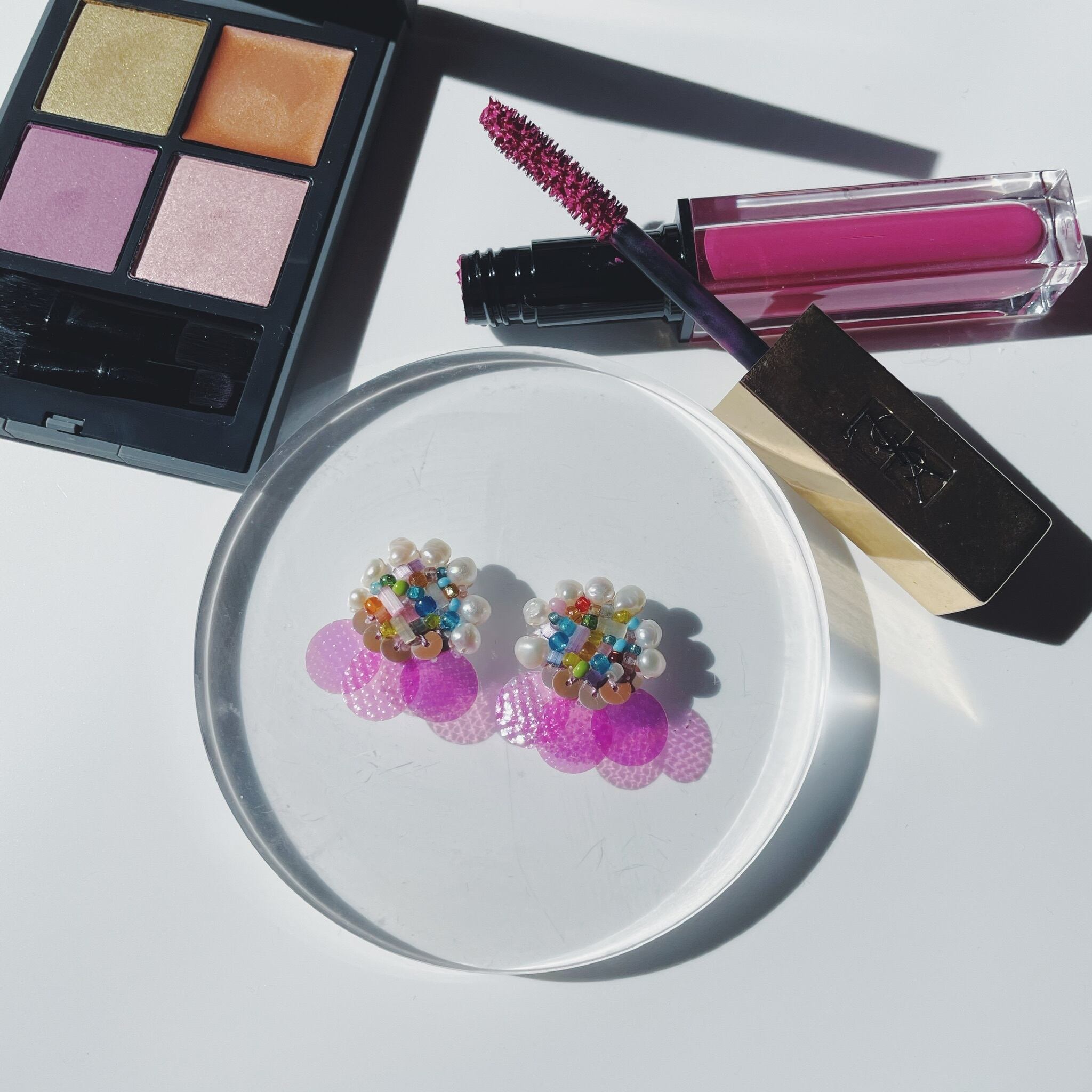 淡水パールの中に敷き詰められたカラフルなビーズたち
