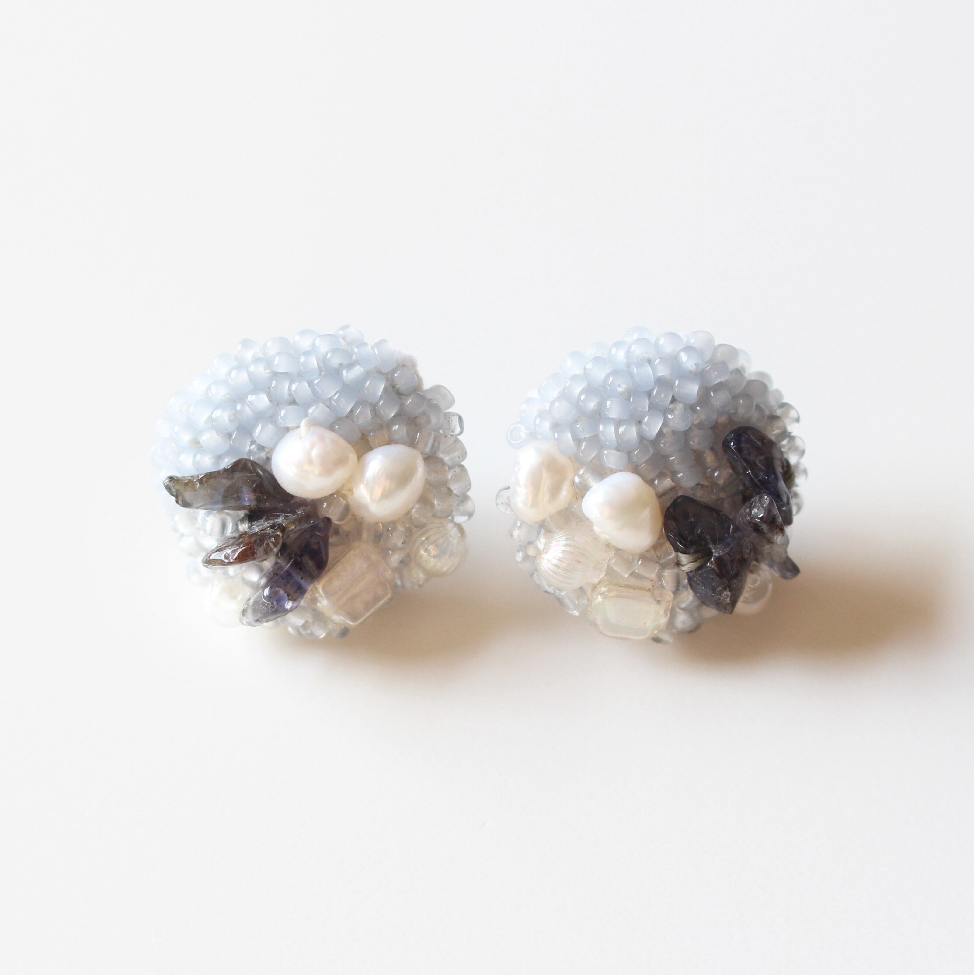 オーロラのビーズやパールが煌めいて、耳元につけるとこのまま夜の中を飛んでいけそうです。
